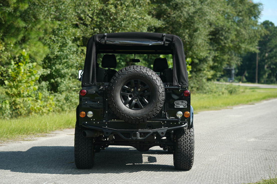 The body was skillfully finished in deep Santorini Black Metallic complemented by color-matched wheel arches and trim, all completed at our in-house body and paint facility. Adding to the vehicle's safety features, a satin black powder-coated multi-point Safety Devices® safety cage provides enhanced passenger protection. The premium black soft top fits snugly, keeping the elements at bay, while the quick and easy-to-roll-up and zip-out side and rear windows offer the freedom of an open-air experience whenever desired.